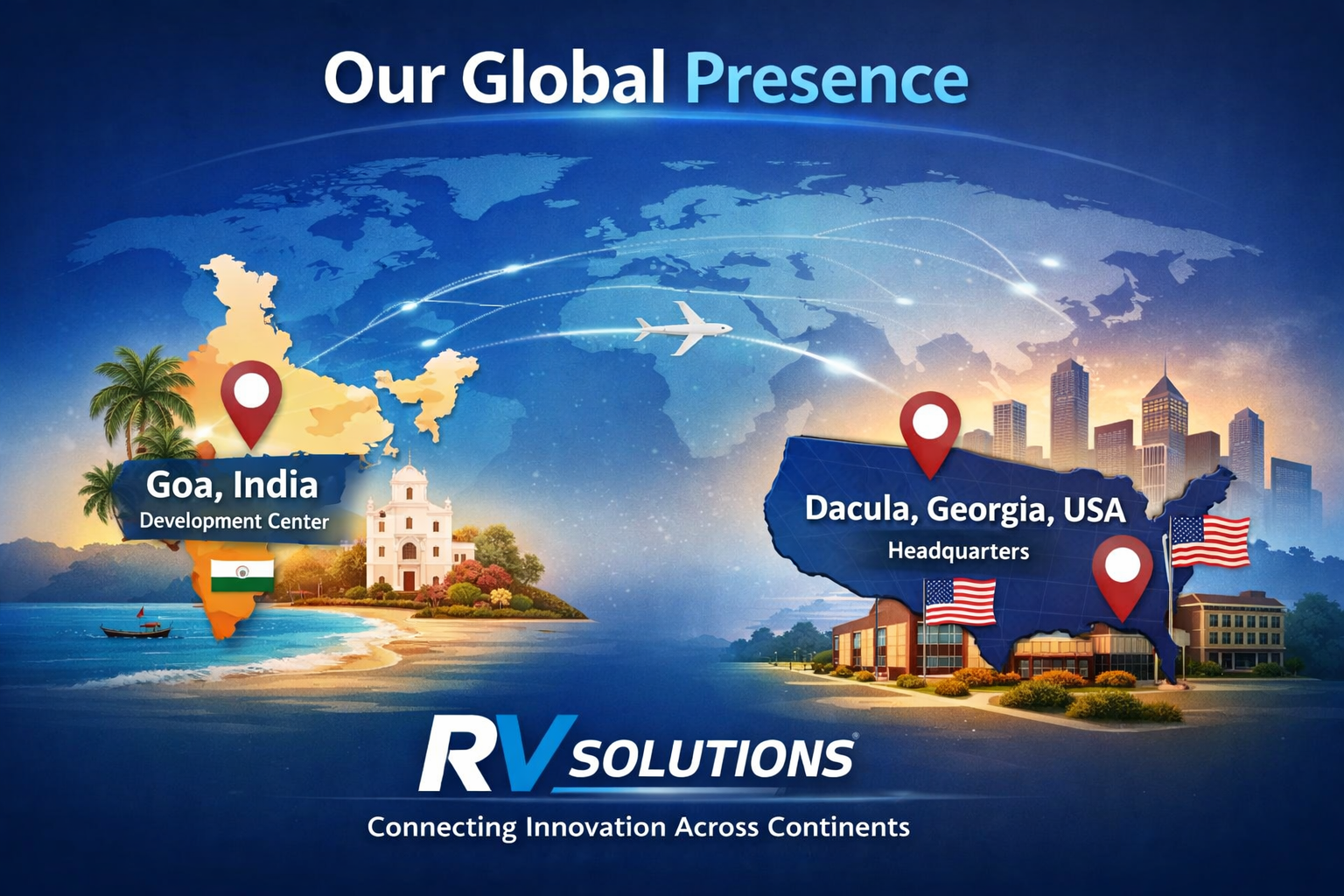 RV Solutions operates across key international locations, enabling us to serve clients efficiently with a perfect blend of global reach and local expertise. Our presence in India and the United States allows us to deliver high-quality technology solutions with round-the-clock support.